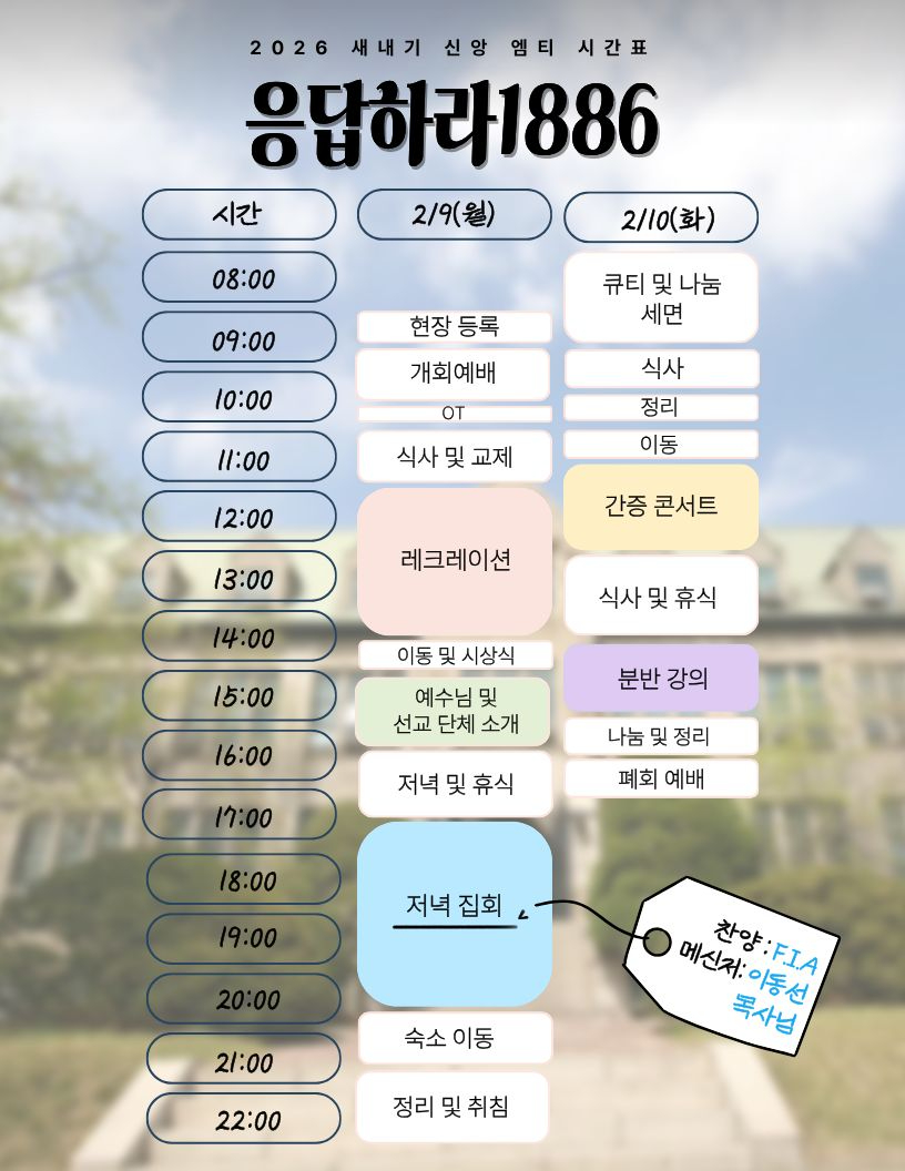 2026년 이화여대 새내기 신앙 MT에서 만나요!